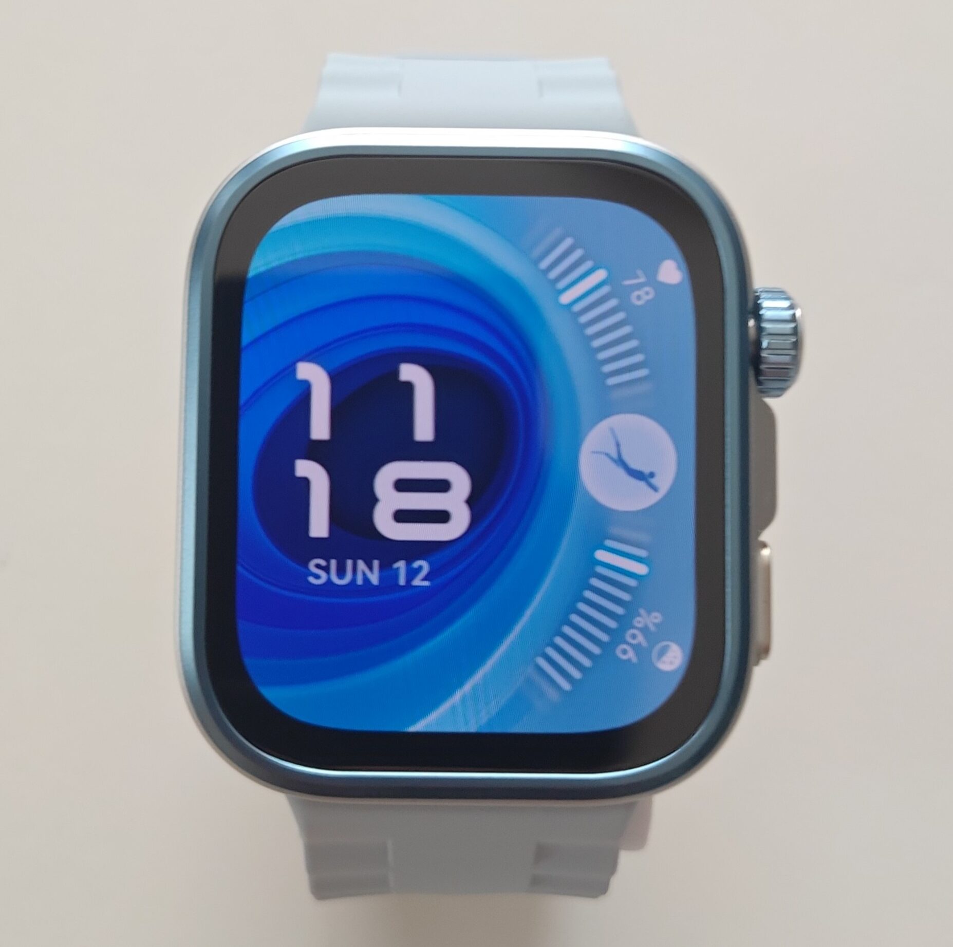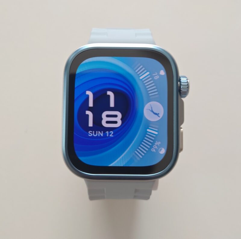 正面から見るとベゼルはほとんど見えず、ディスプレイがそのままウォッチになっているように見えます。