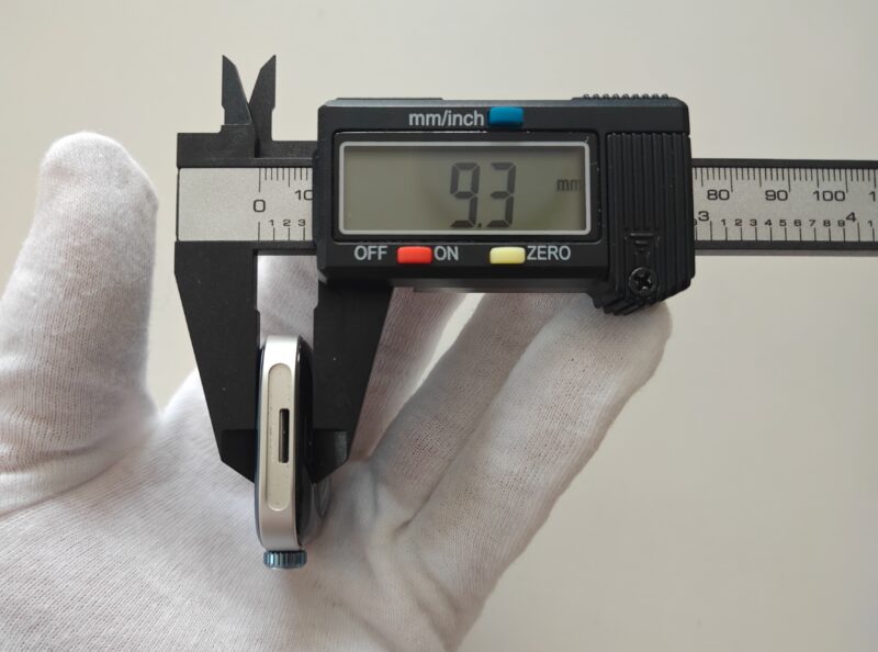 サイズ ※1最も薄い部分 ※2センサー部分の厚み | 縦43.2mm 横36.3mm 厚さ9.9mm ※1 厚さ11.4mm ※2 | 縦44.5mm 横40.0mm 厚さ9.3mm ※1 厚さ11.5mm ※2 |